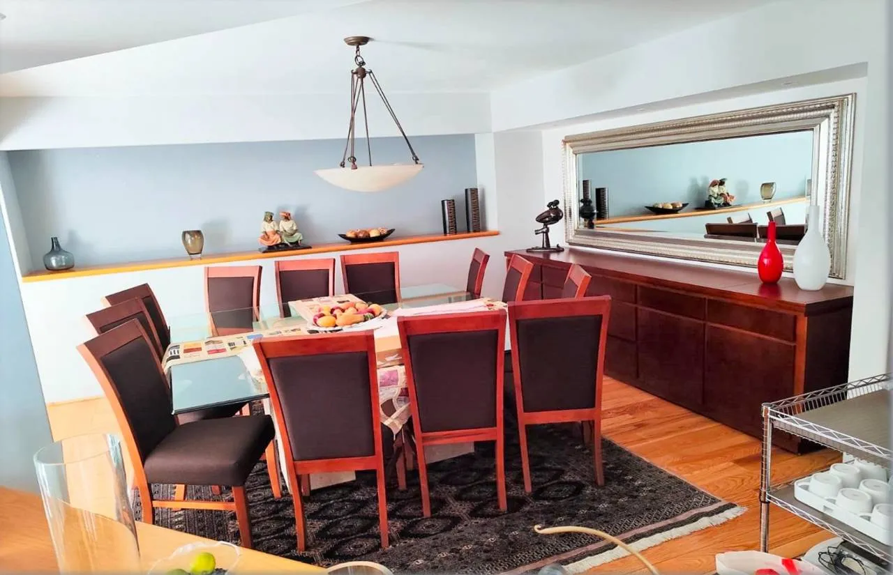 FIRST LEVEL: The living area, with fine natural wood flooring, includes a living room with a fireplace and a double-height ceiling, allowing natural light to flood in through a glass roof, creating excellent illumination and temperature. The dining room is tastefully arranged and well-designed, with a table for 12 guests. A half-bathroom is also located on this level. The fully equipped kitchen can be accessed from the dining room and/or from the exterior, which connects to the main patio. In the kitchen,