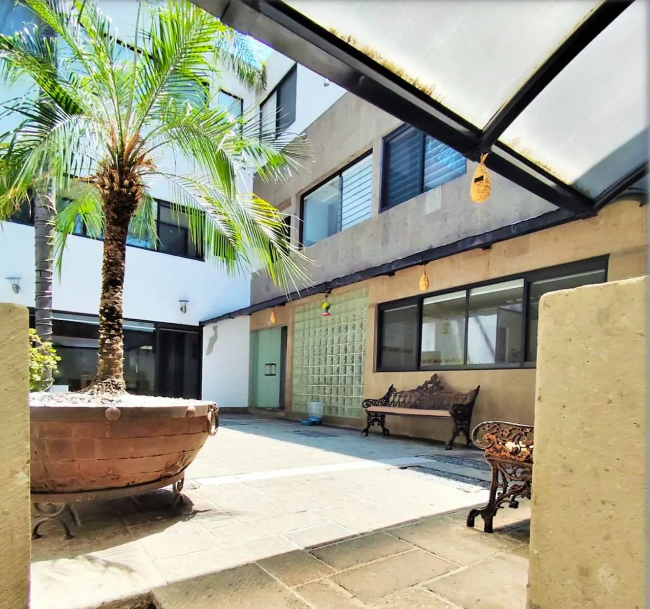 IN COMMON AREAS: Distributed on two levels; It features a palapa of over 300 m2, equipped for events and social gatherings, with a grill and extractor hood, two restrooms (men's and women's), and half of the area covered with tempered glass and aluminum, allowing sunlight to filter through. A water feature and quarry stone floors were also added. This space connects to a 10 m2 garden. On the next level: a storage room, a basketball court, and a spectacular garden of over 200 m2 with panoramic mountain views.